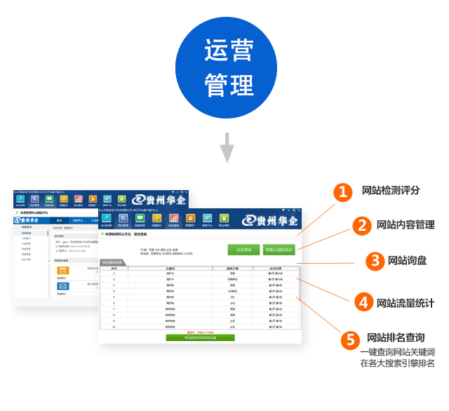 客服端服务系统,可一键对网站进行安全监测、内容管理、流量分析、排名查询。